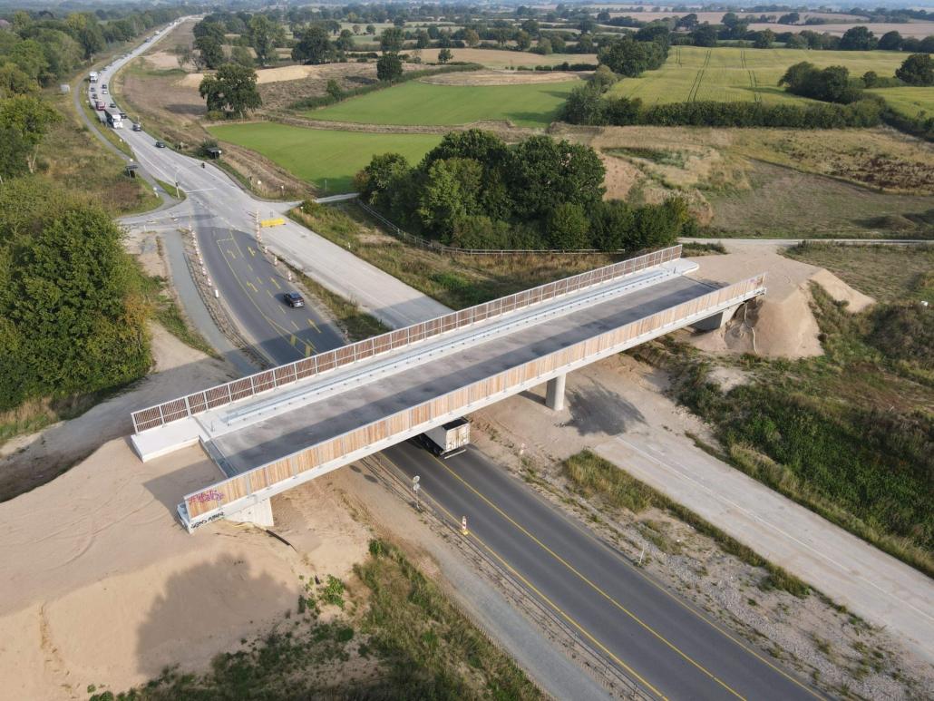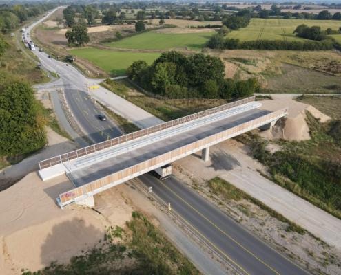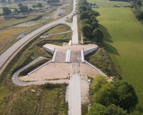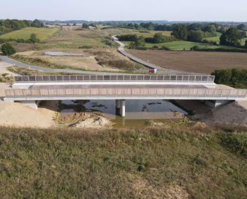 Streckenabschnitt 3A Bauwerk 03 ist ein 2-feldriger Spannbetonüberbau mit einer Gesamtlänge von 58,5 m und einer Breite von 11,8 m zwischen den Geländern.