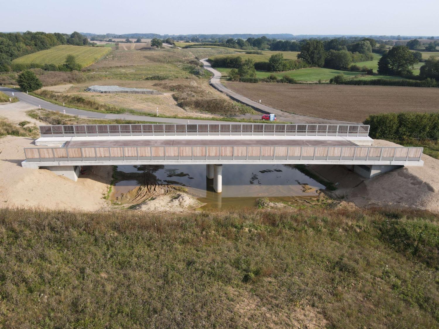 Streckenabschnitt 3B Bauwerk 02 umfasst zwei je 3-feldrige Spannbetonüberbauten mit einer Gesamtlänge von 65,0 m und einer Breite zwischen den Geländern von 30,1 m (2 x 11,5 m Fahrbahnbreite je Überbau). Die Ausführung erfolgte jeweils als 2-stegiger Plattenbalken mit 1,4 m Steghöhe und 0,5 m Plattendicke. Die Lasteinleitung in den Baugrund erfolgt über Widerlager und Zwischenstützungen auf einer Tiefgründung aus Ortbetonrammpfählen.