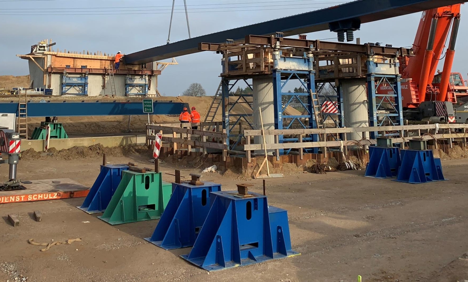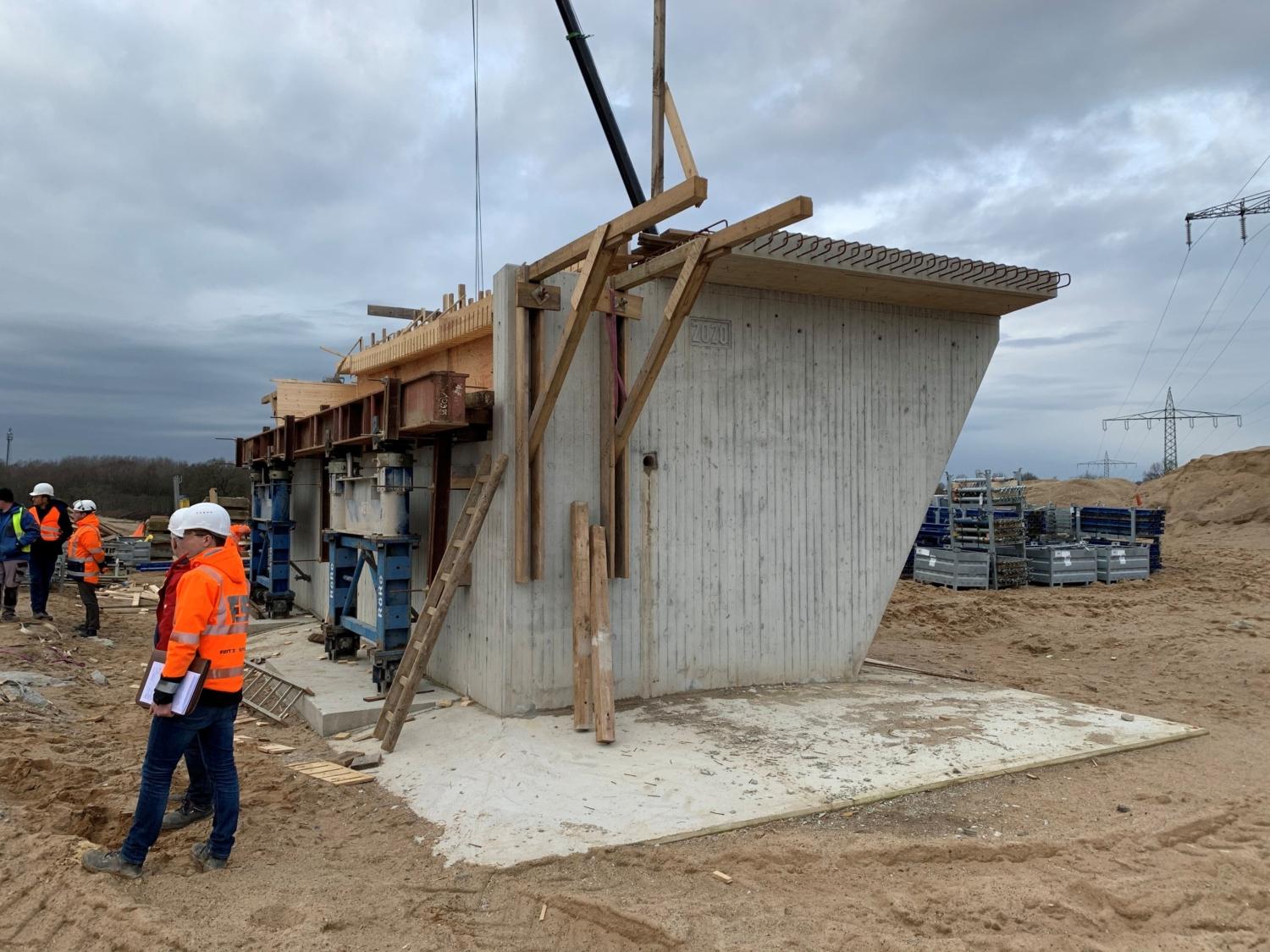 Bei dem Brückenbauwerk handelt es sich um eine zweifeldrige Stahlverbundbrücke mit gelenkiger Lagerung (Elastomerlager) auf den Widerlagern und Einspannung in der Mittelstütze.