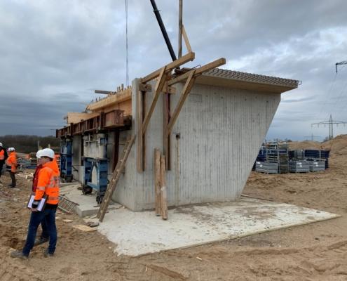 Gegründet ist das Bauwerk über Ortbetonrammpfähle mit Fußausrammung, diese sind teilweise mit einer Neigung von 4:1 hergestellt.